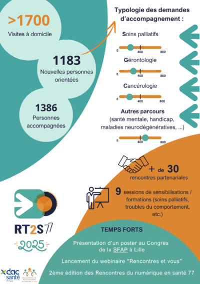 L’association RT2S77 porte le Dispositif d’Appui à la Coordination DAC Santé 77 Sud, financé par l’Agence Régionale de Santé d’Ile-de-France. L’équipe de RT2S77 accompagne les professionnels de santé hospitaliers et libéraux, de santé et du médico-social, dans la coordination des parcours des patients montrant une complexité, de tout âge et toute pathologie.