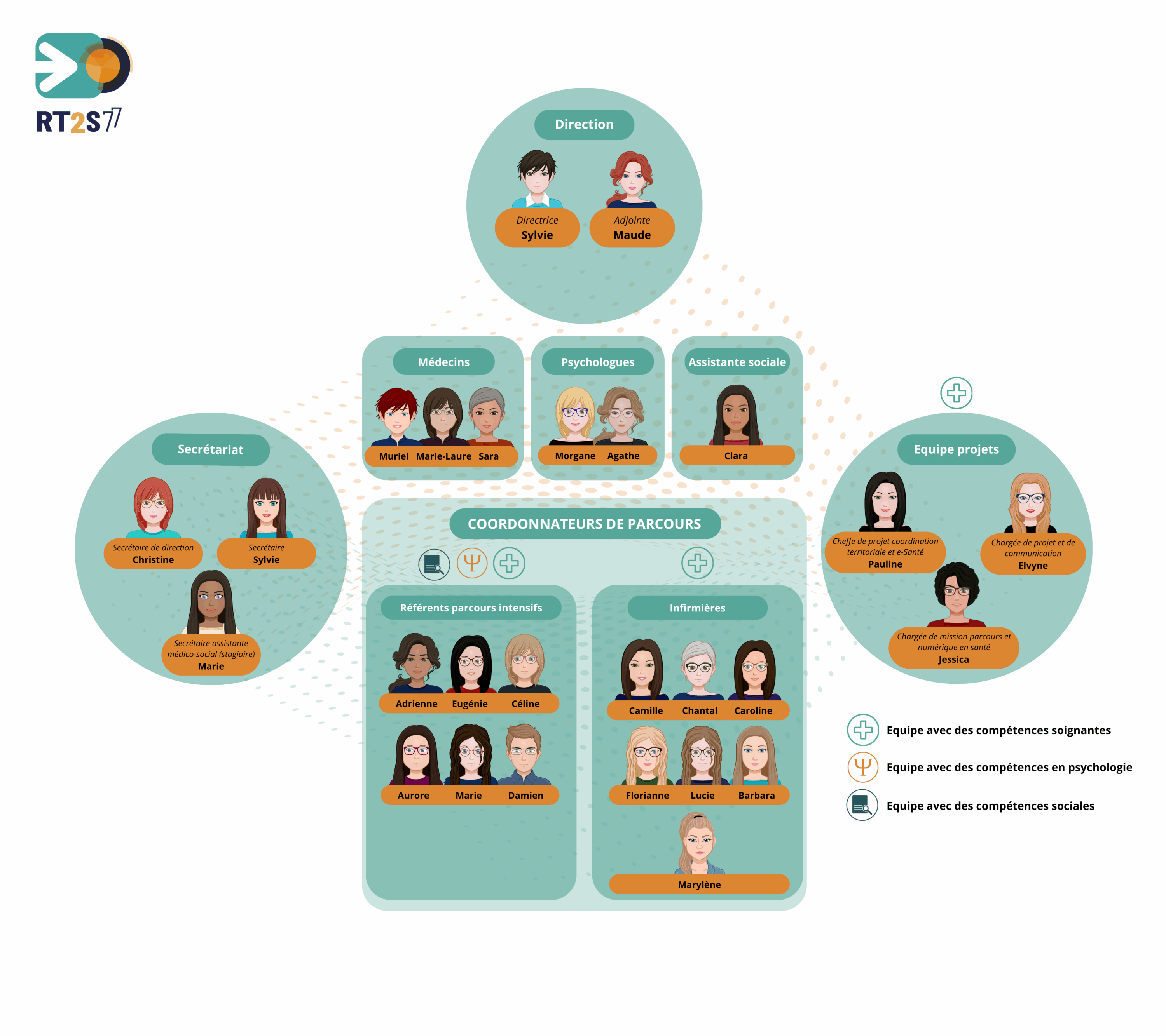 RT2S77, c’est une équipe de coordinateurs d’appui composée de médecins, d’infirmières, de psychologues, d’assistantes sociales, de référents parcours intensif. Nous intervenons à domicile, réalisons des évaluations médicales ou médicosociales, coordonnons et facilitons la mise en place d’aides pour les patients ou les aidants.