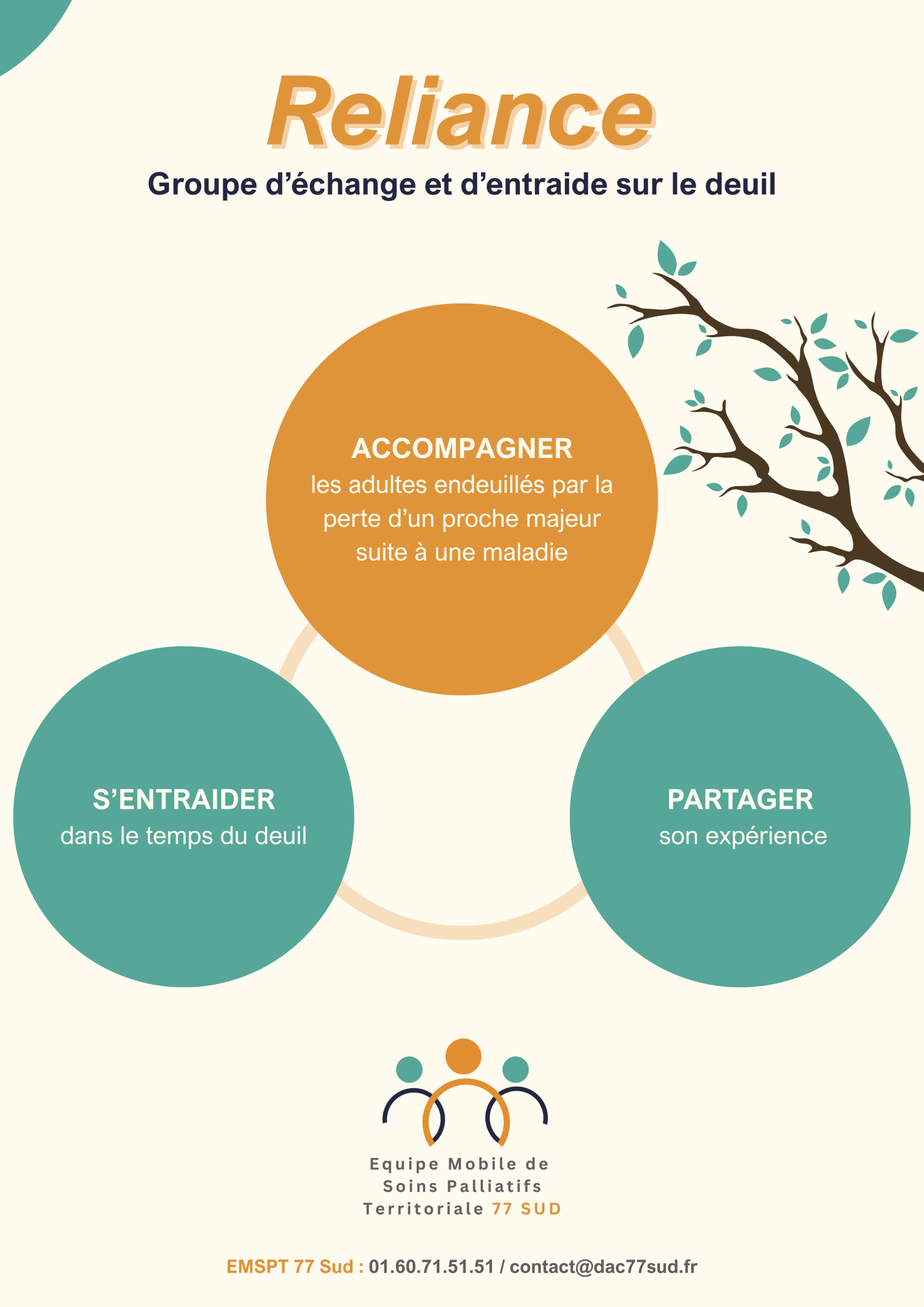 S’appuyant sur les compétences pluridisciplinaires de ses infirmières et de ses psychologues, l’équipe a élaboré le projet « Reliance » visant à accompagner les adultes endeuillés par la perte d’un proche majeur suite à une maladie.